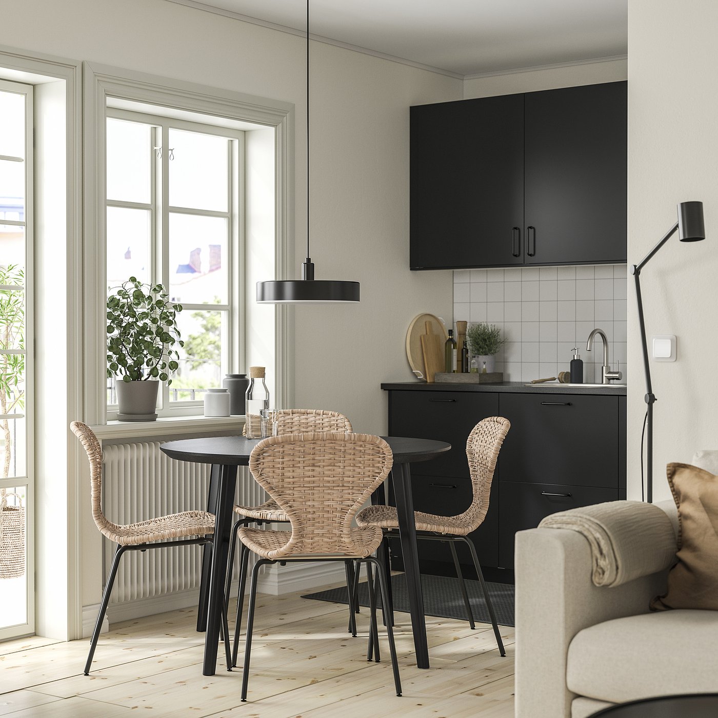 Table and 4 chairs, black/rattan black