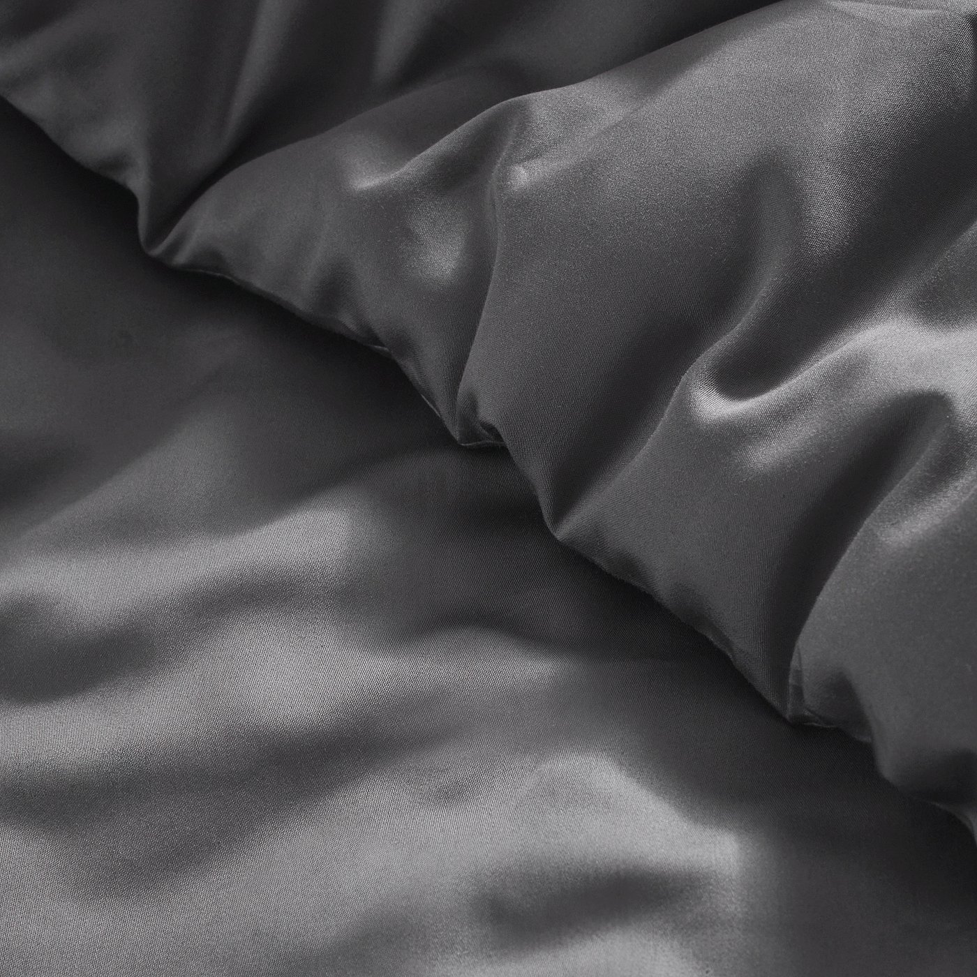 Silky-smooth set with a lovely luster and a fluffy comforter that embraces you softly. Sateen-woven with high thread count lyocell and pure cotton that transport moisture away and keep your dry all night.