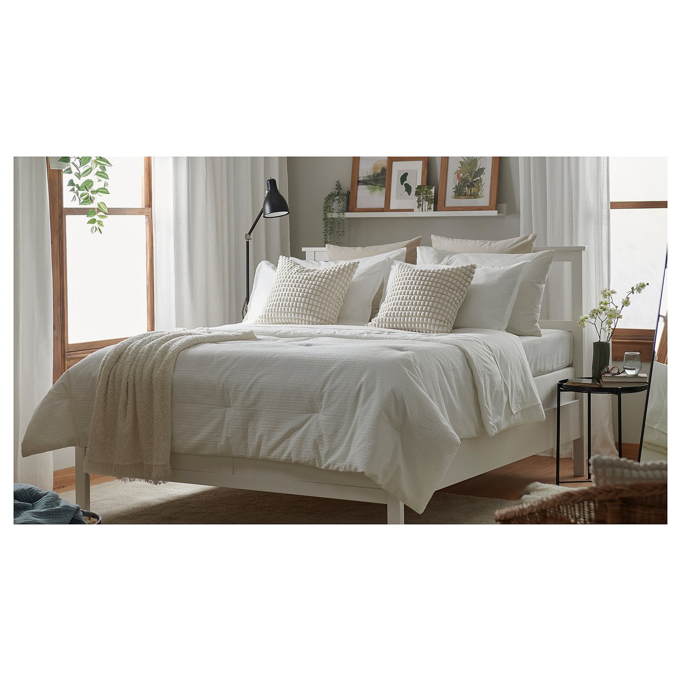 A set in timeless white with a waffle structure where the comforter’s wonderfully soft cotton shell breathes and its fluffy filling feels like a soft embrace.