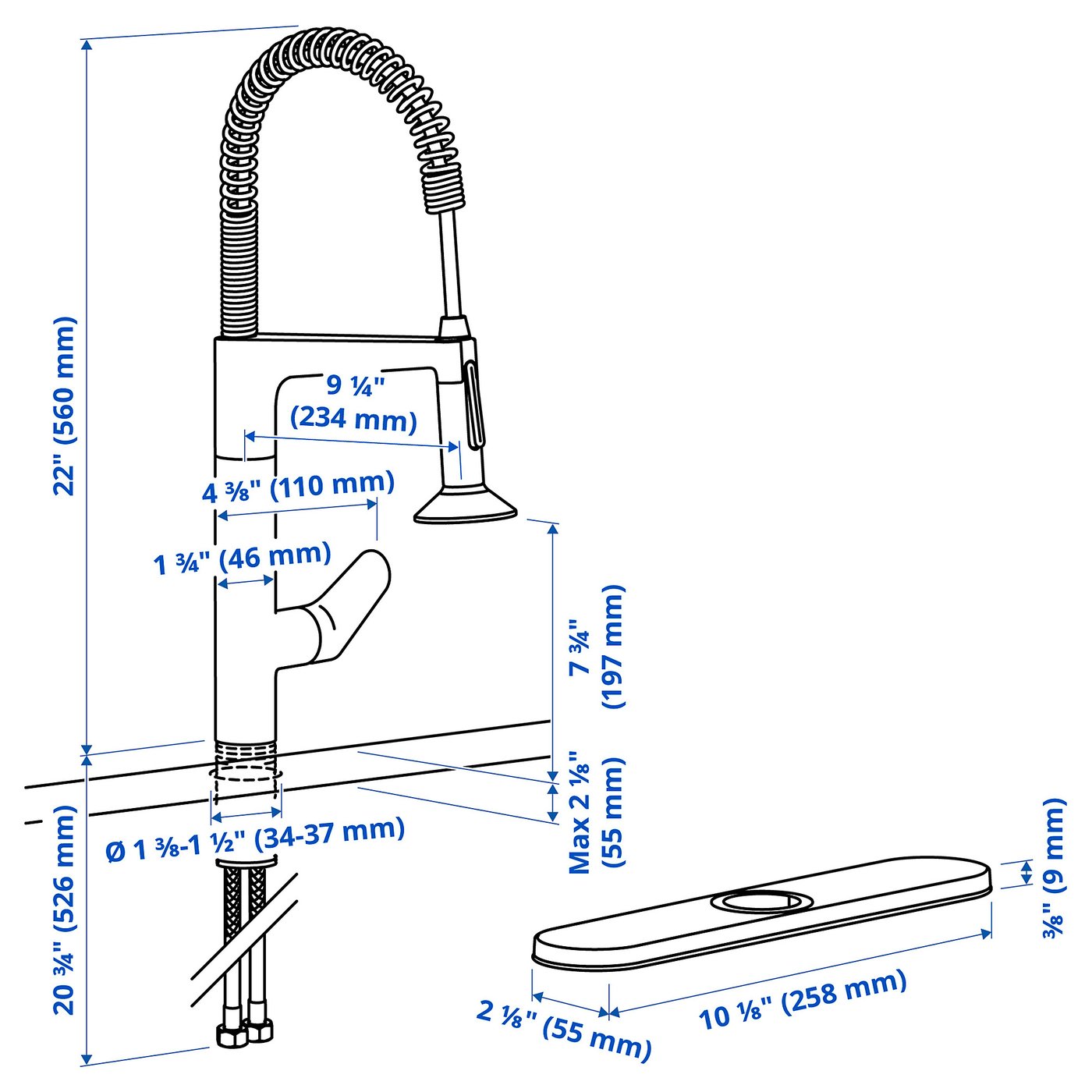 Flexible hose allows for easy movement, pivoting and reaching every corner of the sink.