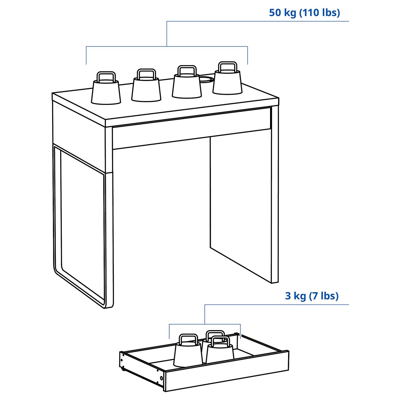 You can extend your work surface by combining desks and drawer units. All desks and drawer units in the MICKE series are the same height.