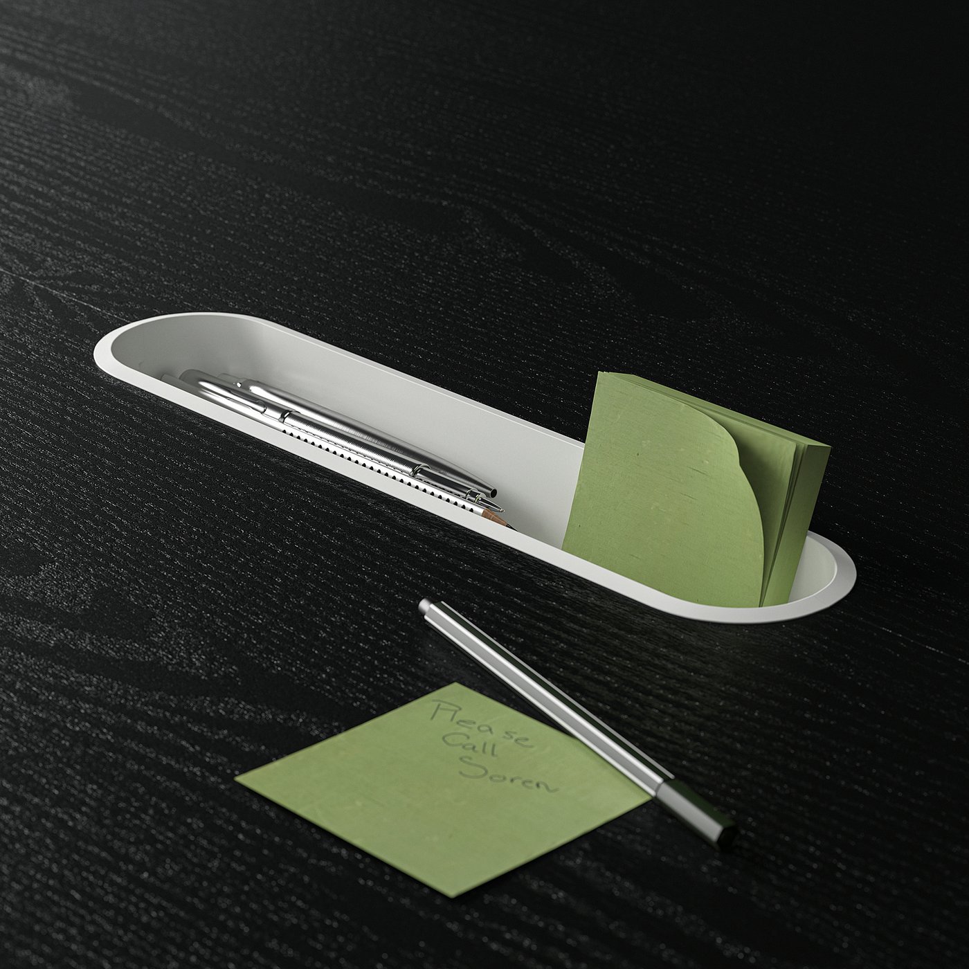 The round table has a small compartment perfectly sized for KOPPLA cable socket (sold separately) or smaller items like pens and post-its.