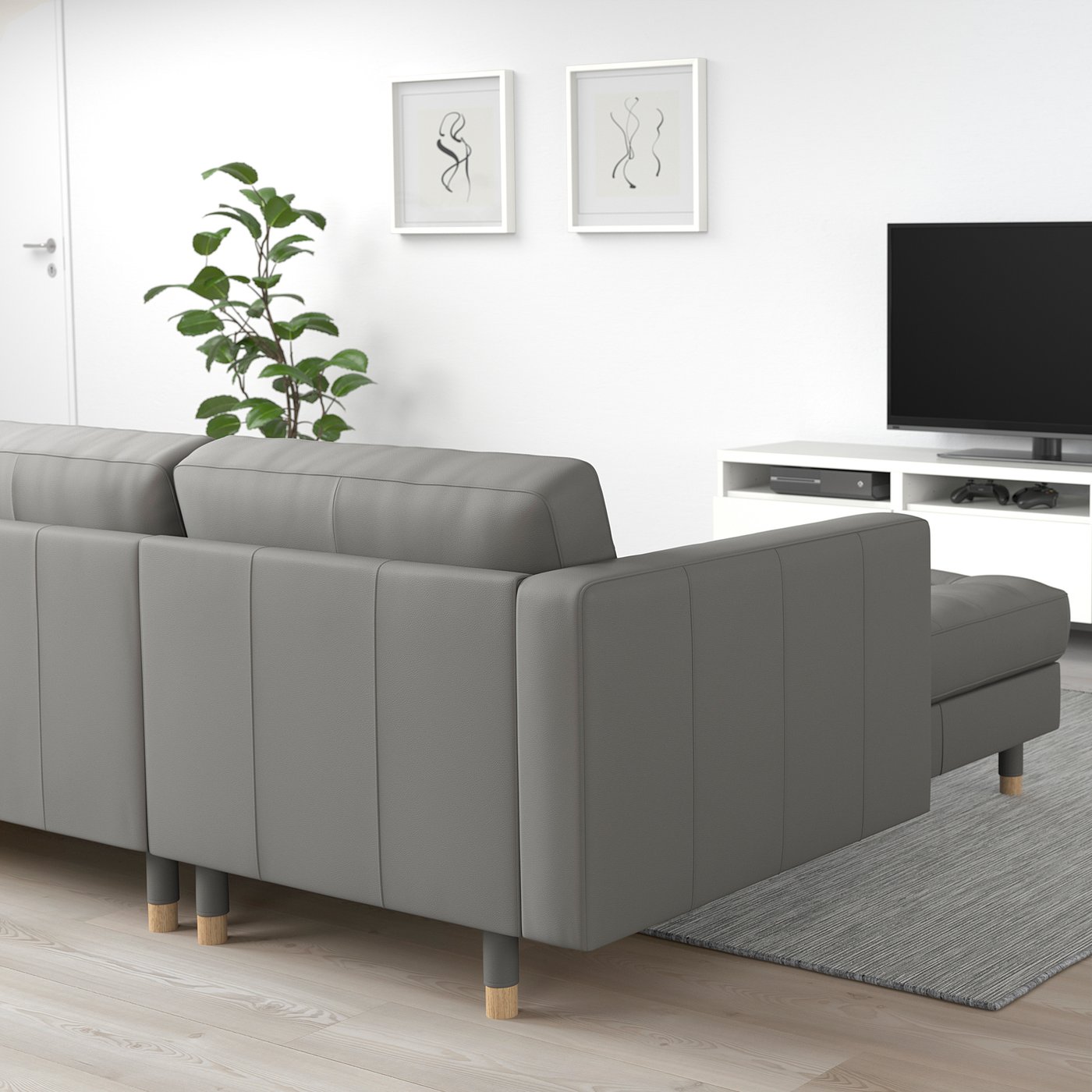 The contact surfaces are covered with GRANN – a soft, smooth and strong grain leather with natural variations. Other surfaces have BOMSTAD, a coated fabric that has a similar look and feel to leather.