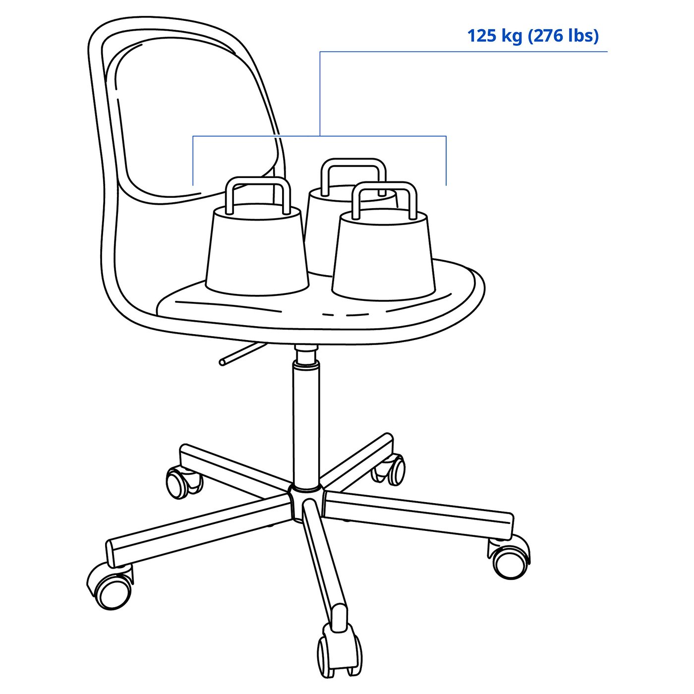 Safety function – Castors lock when the chair is not in use to keep it securely in place.