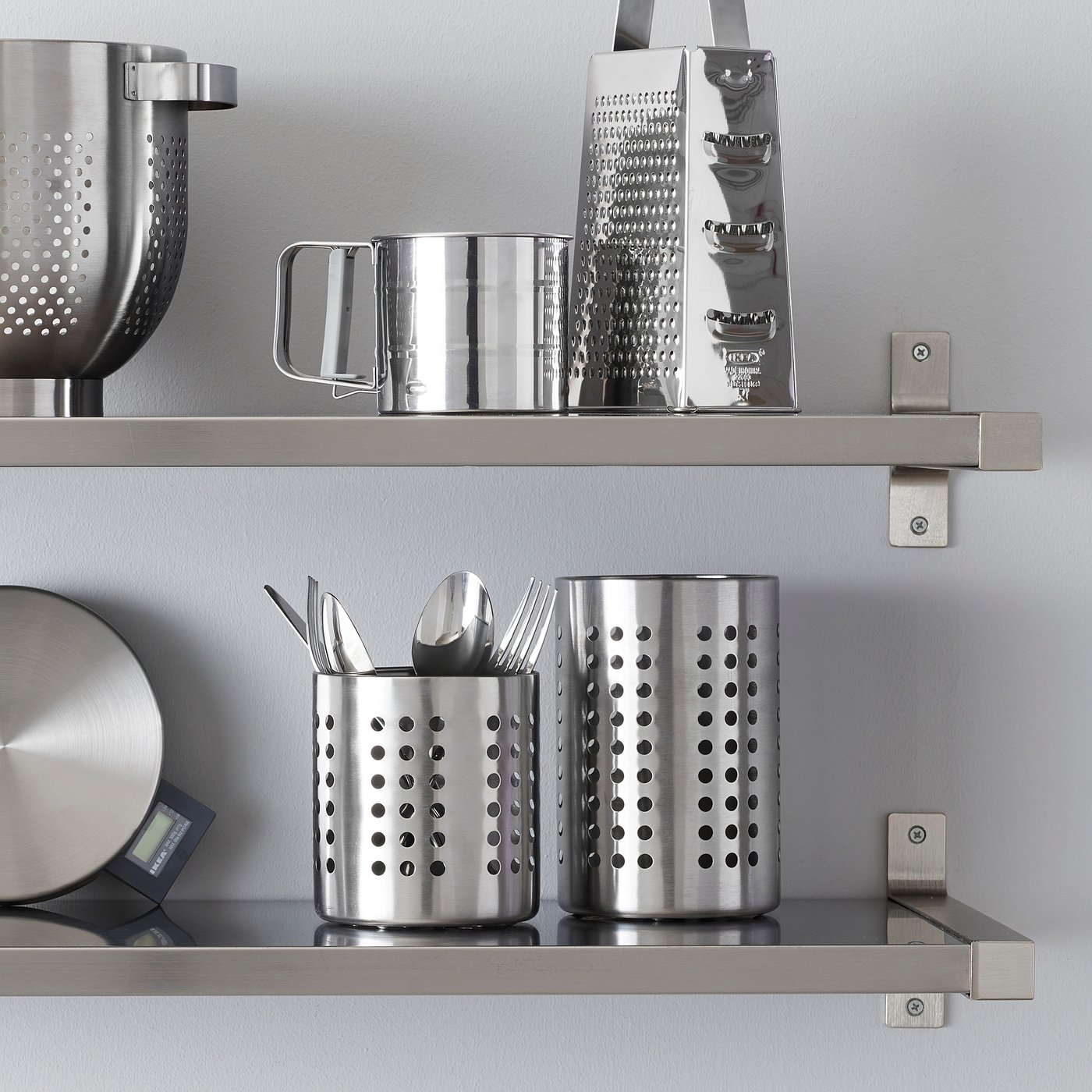 This stainless-steel rack is just as suitable for wet kitchen utensils by the sink as for clean and dry utensils by the stove. Like the style? The same series also has stands for flatware and dishes.