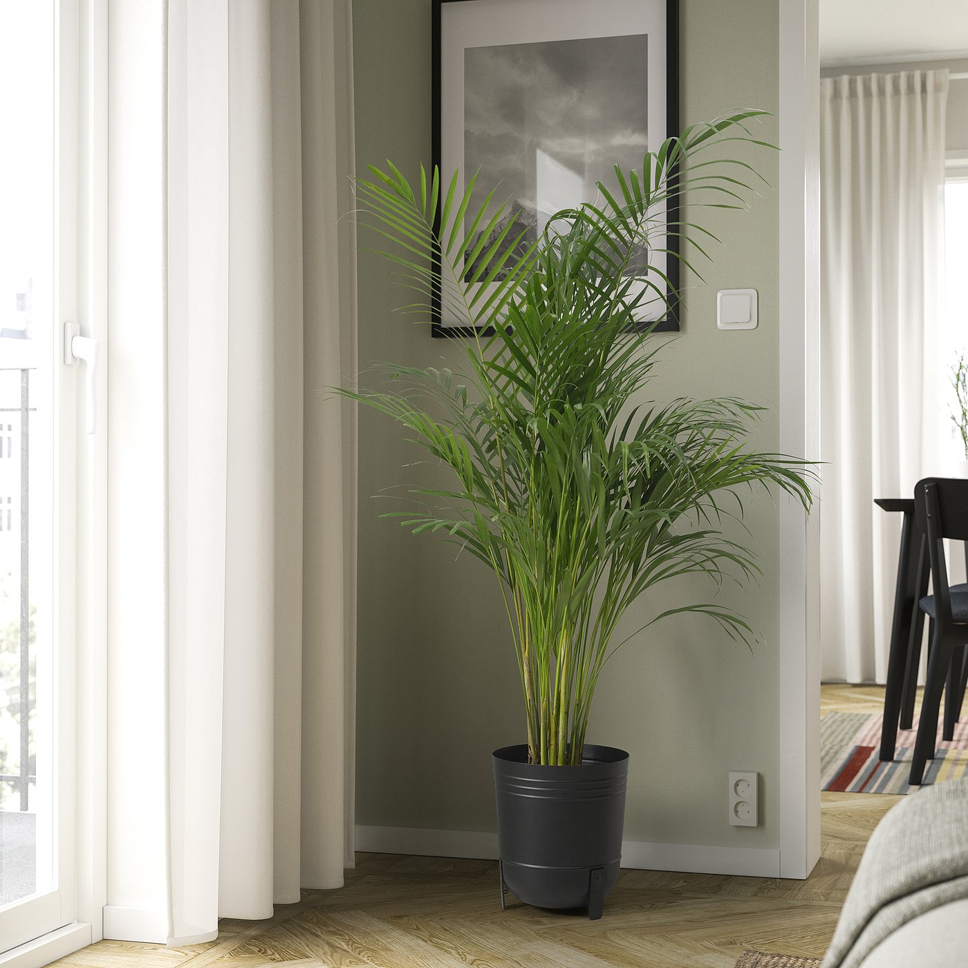 PÄRLRÖNN plant pot has a simple design with a round shape and supporting legs. It easily blends into the home – and lets your plants be the center of attention!