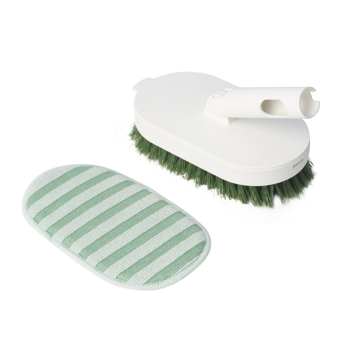 You can hold the microfiber pad in your hand or mount it on the brush head.