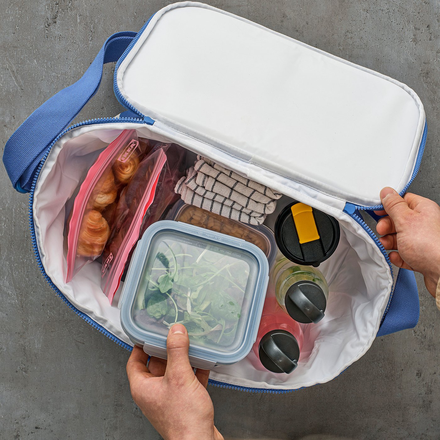 This insulated bag keeps your food cold – and you can add ice packs to lower the temperature more if you like.