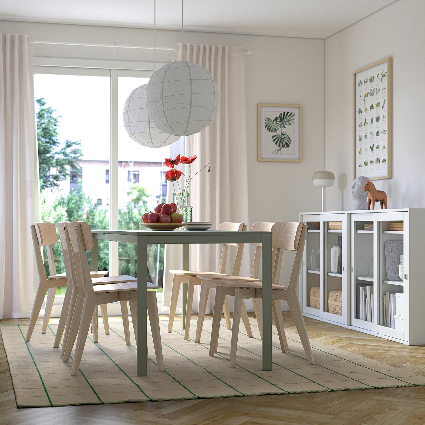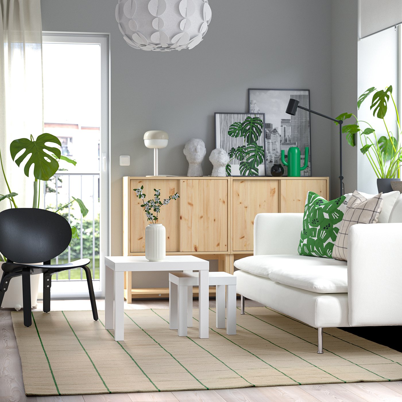 Foot-friendly soft cotton rug in off-white with vivid green check pattern. The flatweave makes it a perfect companion under the dining table – it’s easy to vacuum and chairs are easy to pull out.