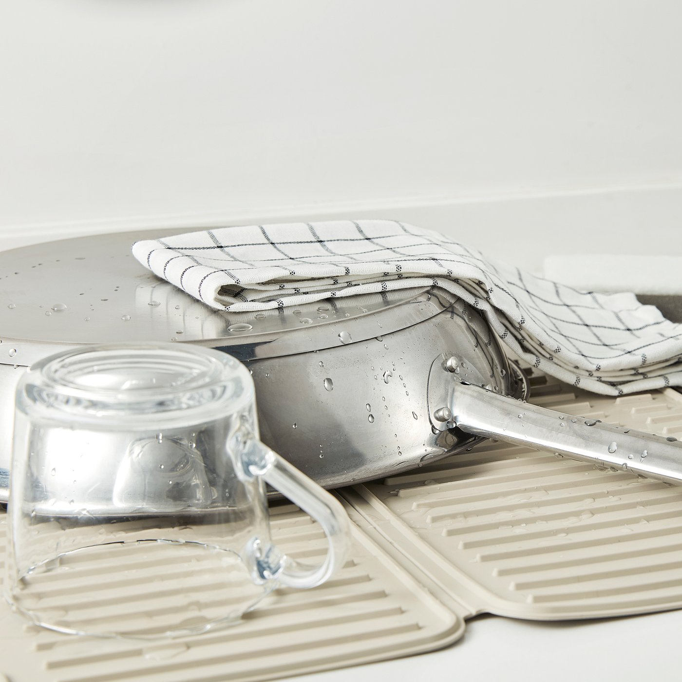 This foldable drying mat makes kitchen work easier and helps you keep the worktop neat and tidy. Perfect to put the dishes on ─ or to place under the dish drainer to gather all the drips.