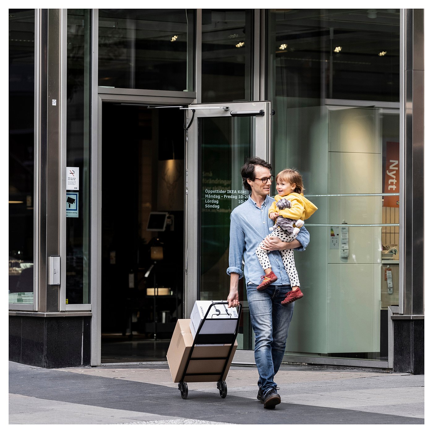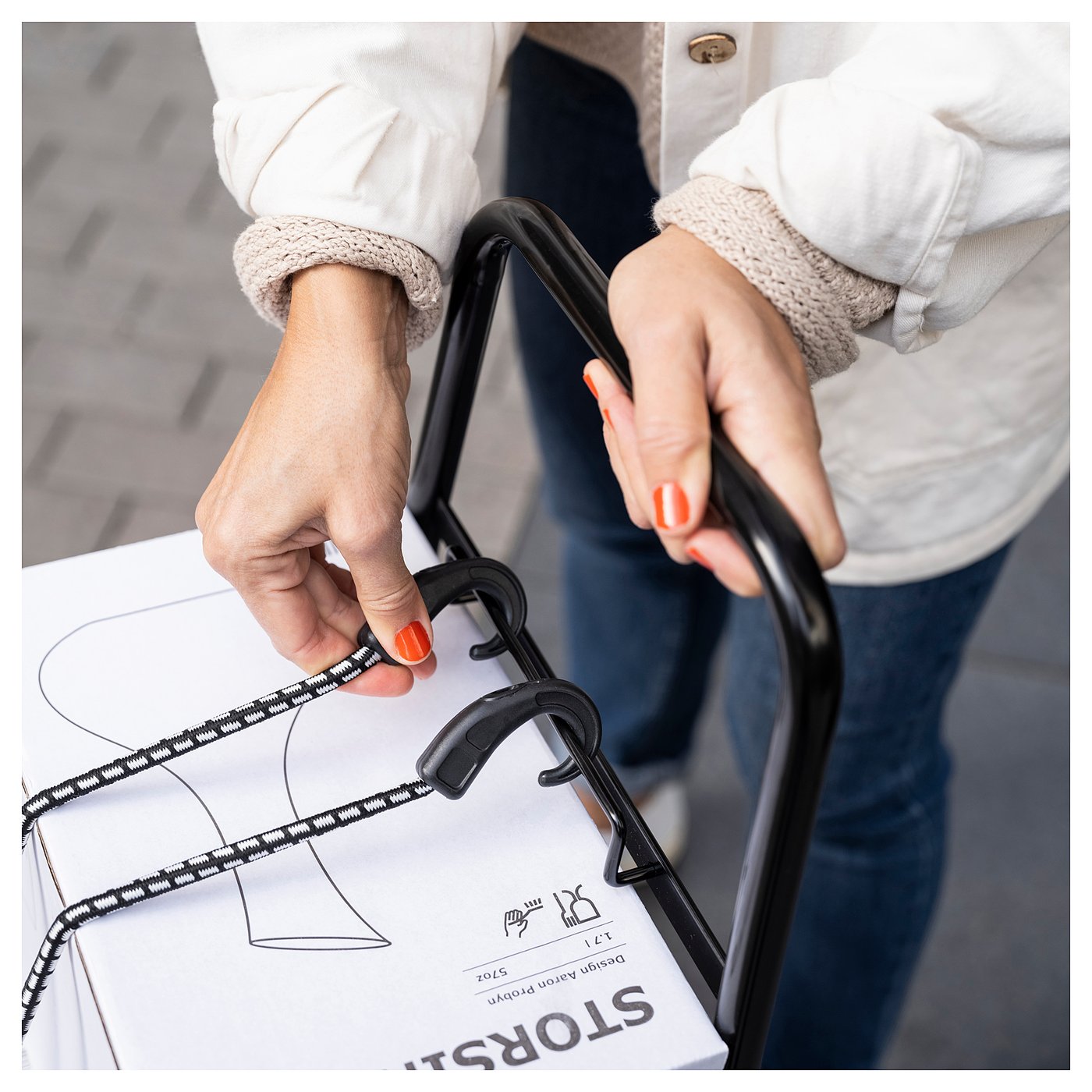 Let this sturdy trolley help you carry large and heavy things from the store, the car or when moving and refurnishing. Simple to fold up and takes up little space to store.