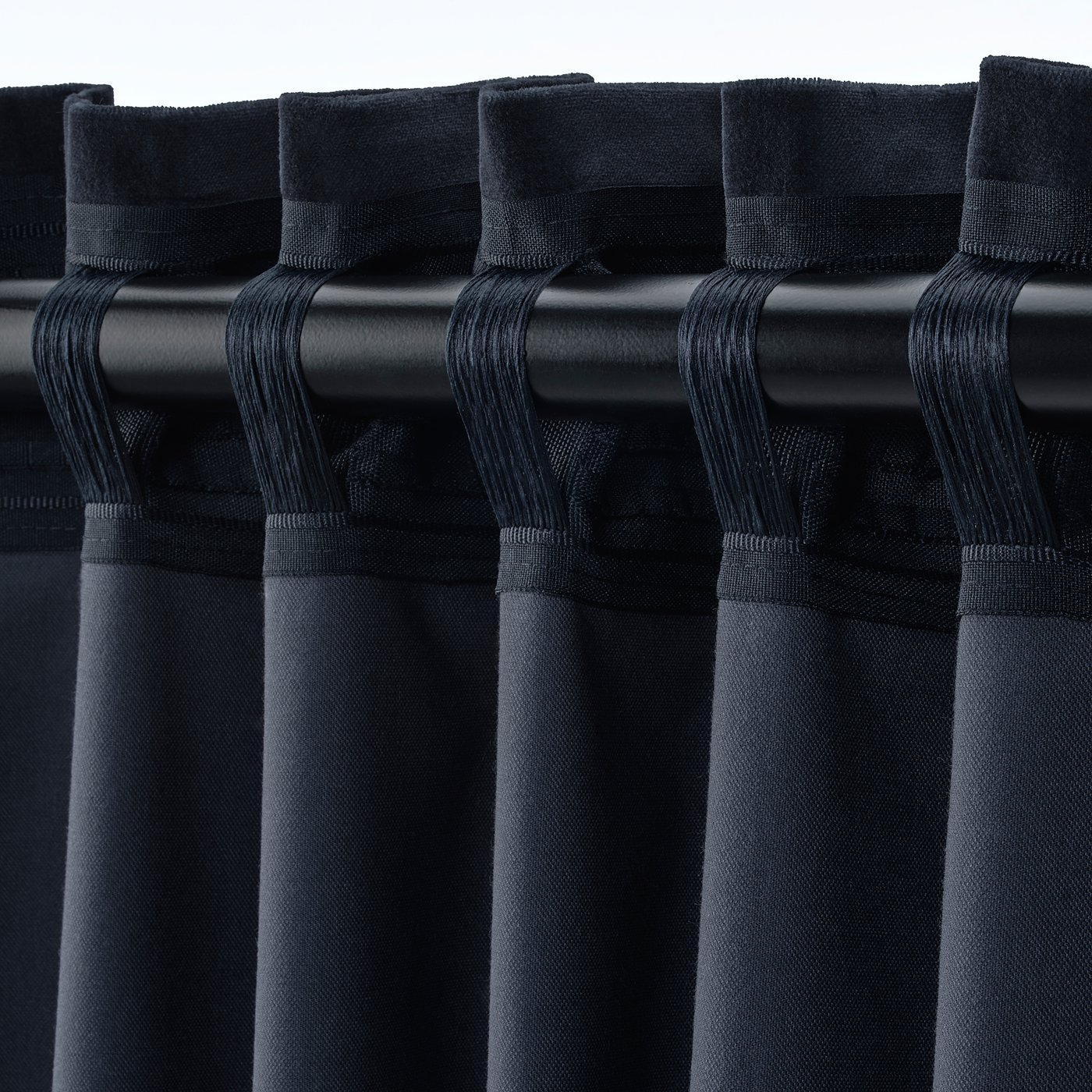 SANELA curtains are made of pure cotton velvet, adding gorgeous depth to the dark blue tone. The pleats fall elegantly and the fabric filters light gently. Multi-way header for different hanging options.