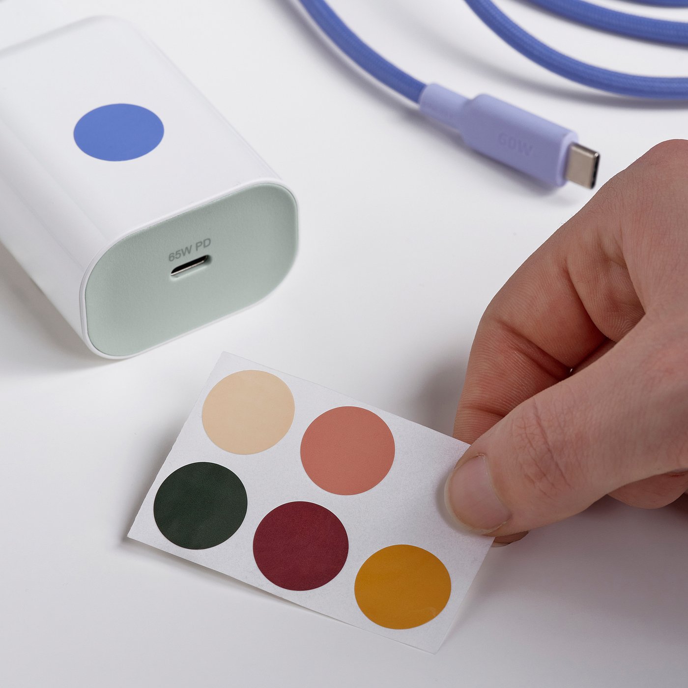 You can personalize the charger with the 6 included stickers in different colors, either to avoid mixing it up with other chargers – or simply just choose your favorite color of the day.