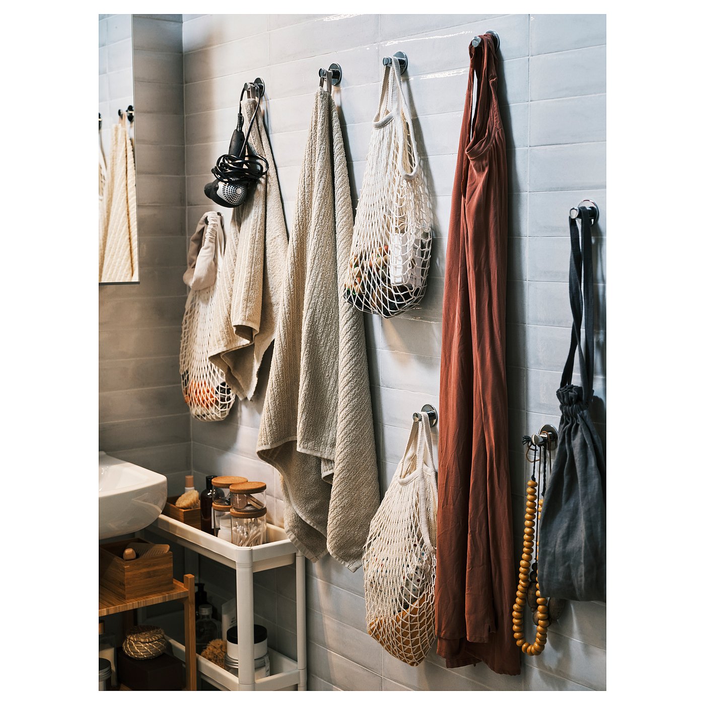 No drill holes are needed for this hook. Instead, you simply attach it using the self-adhesive tape on the back. A perfect choice for those who like simple solutions – and care about their walls.