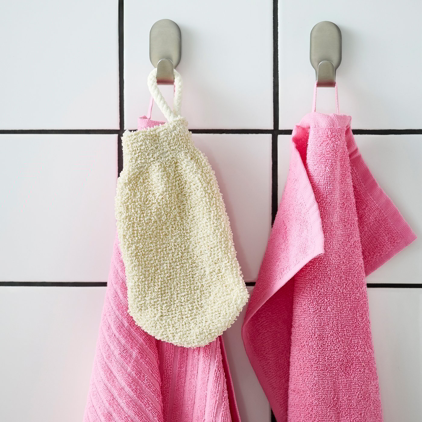 Use the loop to hang the scrub-mit to dry - easy and hygienic.