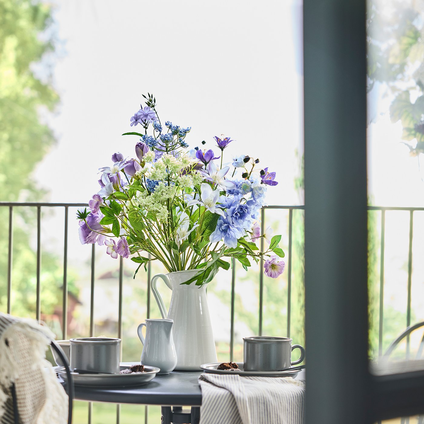 Artificial bouquet, indoor/outdoor/blue/lilac