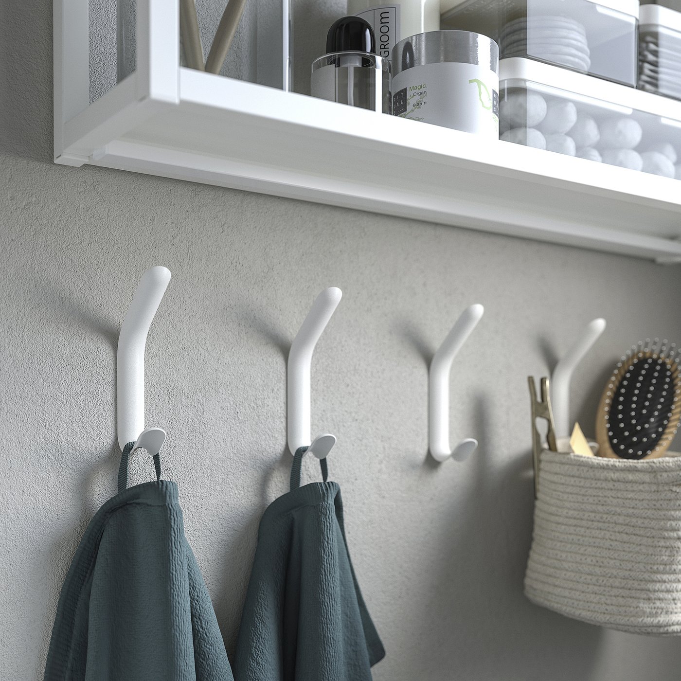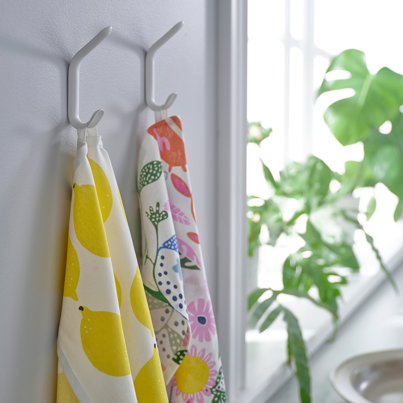 Need a hook for your bag and jacket in the hallway or for the apron and tea towel in the kitchen? Here it is! A sleek white double hook in metal with hidden screws that blends in everywhere.
