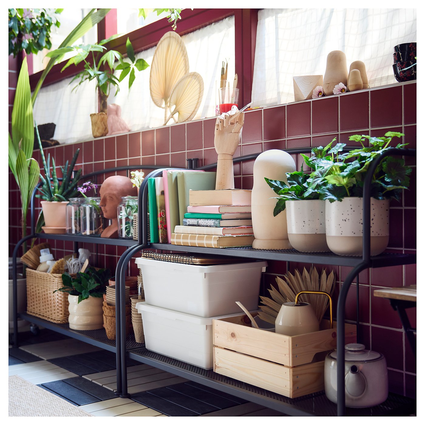 Fits well in HEJNE and IVAR shelves with a depth of 11¾" and in other storage with shelves that are at least 9⅞" deep.