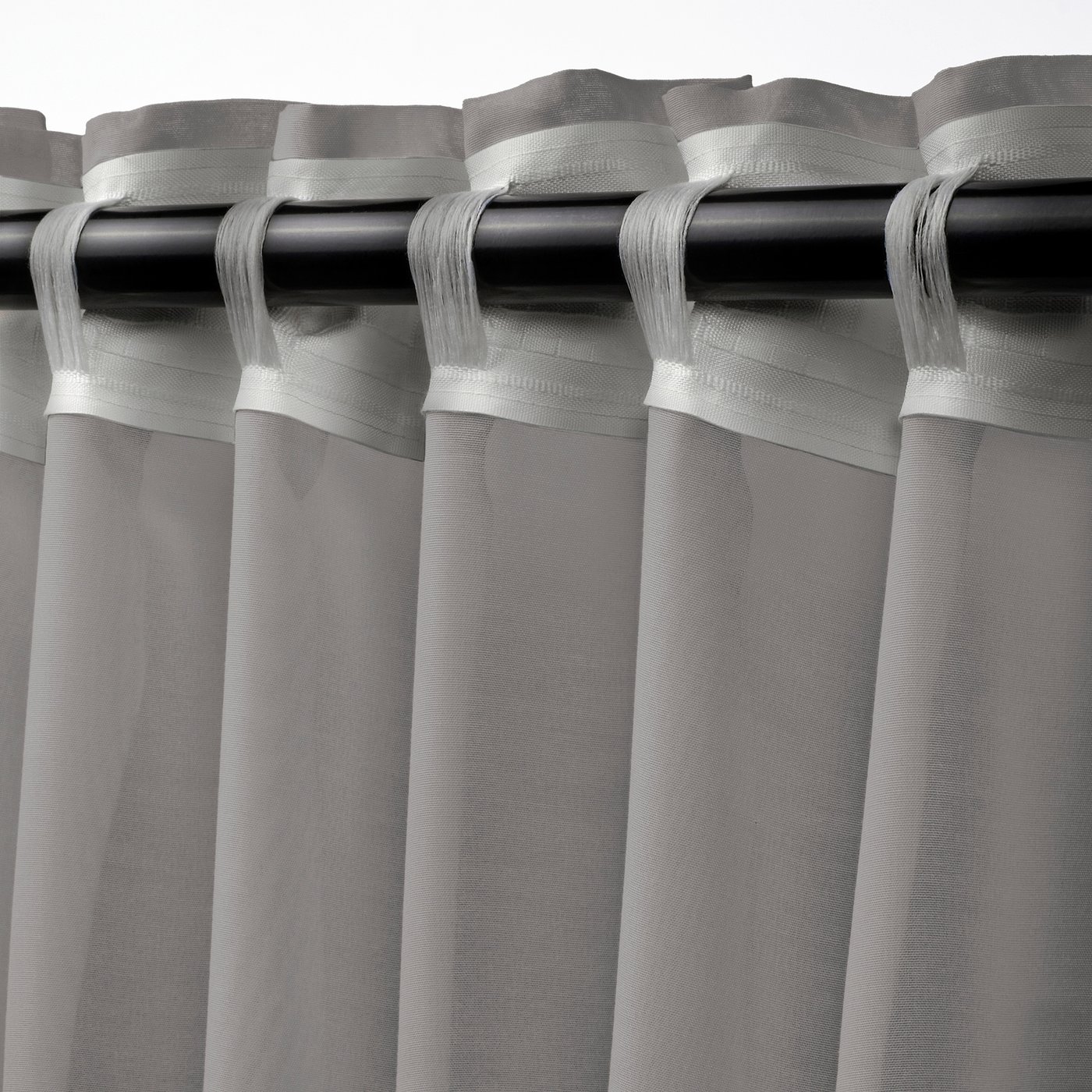Sheer curtains, 1 pair, gray/with heading tape