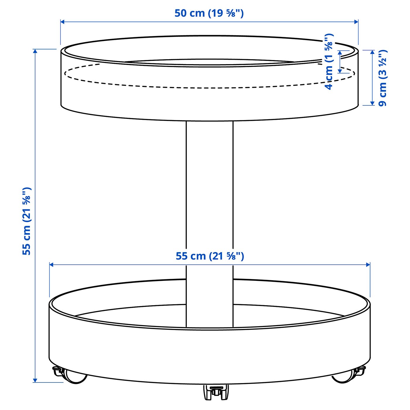 High edges on both the upper and lower storage areas keep your items secure and prevent them from falling off the trolley.