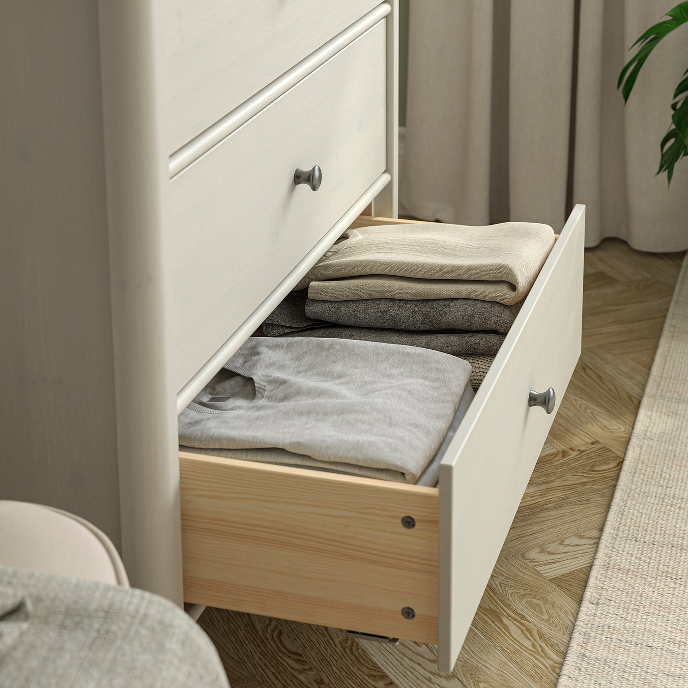 The rounded corners and edges give the chest of drawers a softer look – and are also a bit kinder if someone in the family happens to run into it during sleepy mornings or lively evenings.