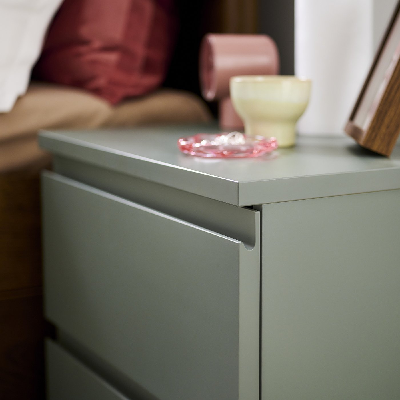 Bedside table with 2 spacious and smooth-running drawers that help you have everything you need easily accessible by your bed.
