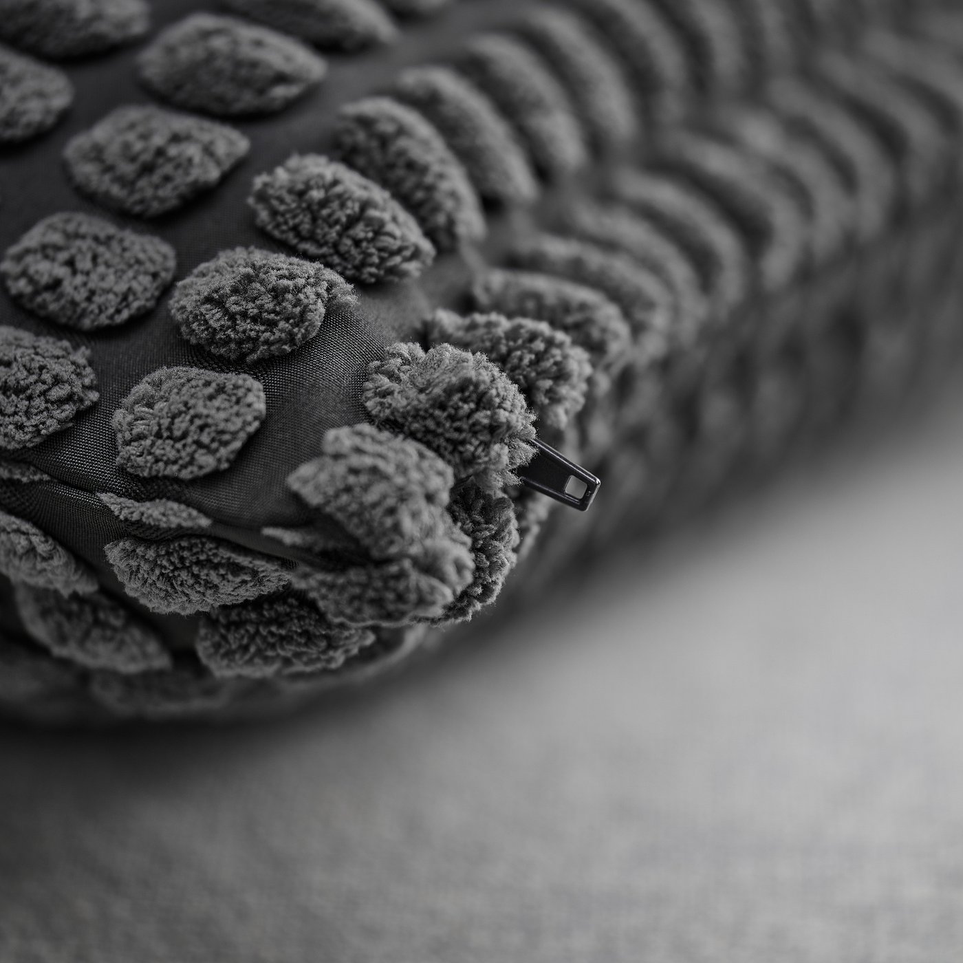 Super-soft cushion cover in anthracite with a tactile pattern that enhances the different tones in the pile and base. Take your pick from an array of colors or mix. Made of 90% recycled polyester.
