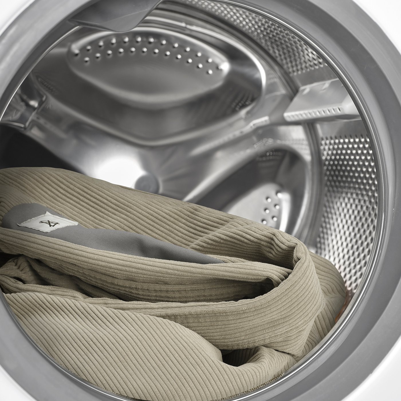 This cover is made from Kelinge fabric in soft polyester. The wide-wale corduroy is thick, comfortable and soft to the touch, with a slight lustre that gives it a nice and cozy look.