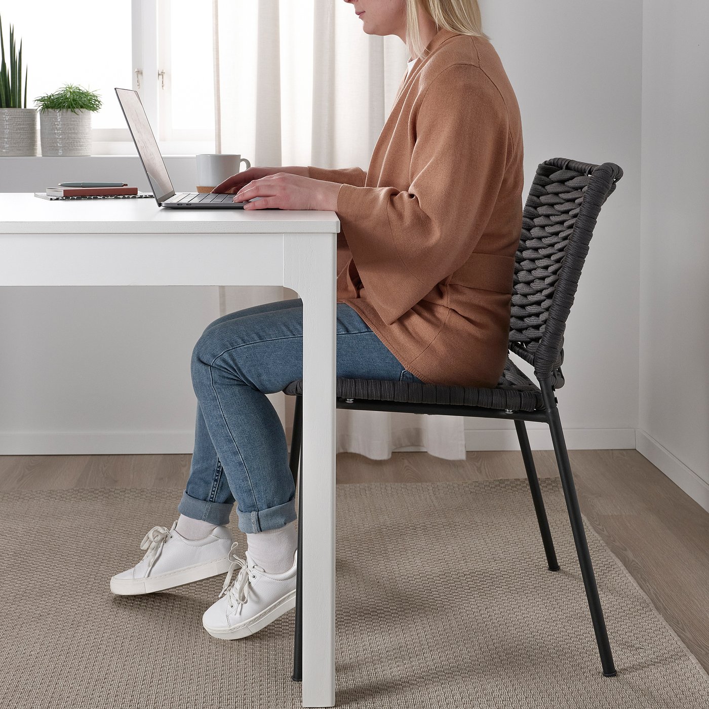 Enjoy long dinners outdoors. The easy-care and durable TEGELÖN dining chair has a soft and flexible rope seat that makes even the most restless want to stay at the table – and adds personality to the chair too.