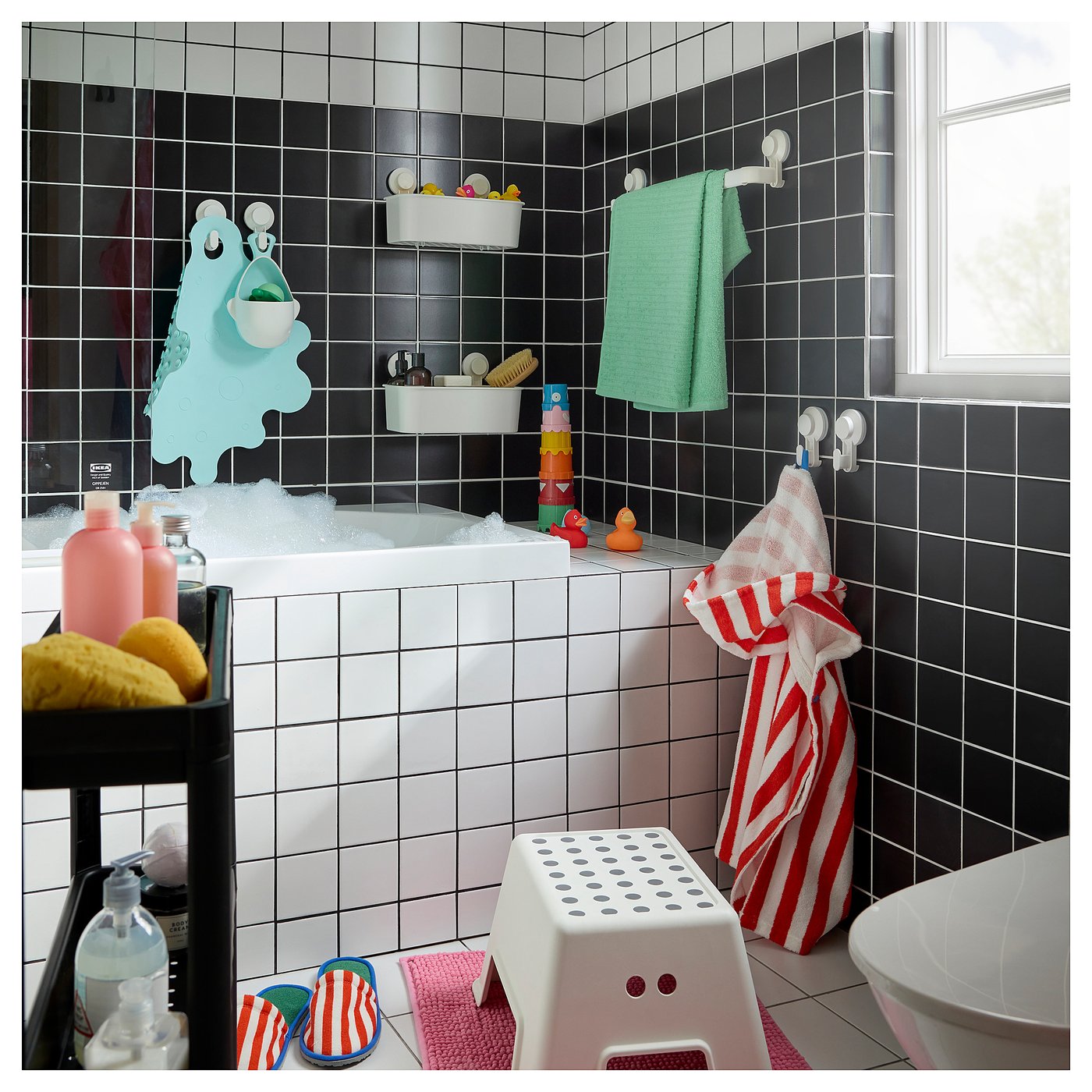 TISKEN series puts things within easy reach without having to drill any holes into your walls. The tight-grip suction cups won’t let go of smooth surfaces like glass or tiles – unless you want them to.
