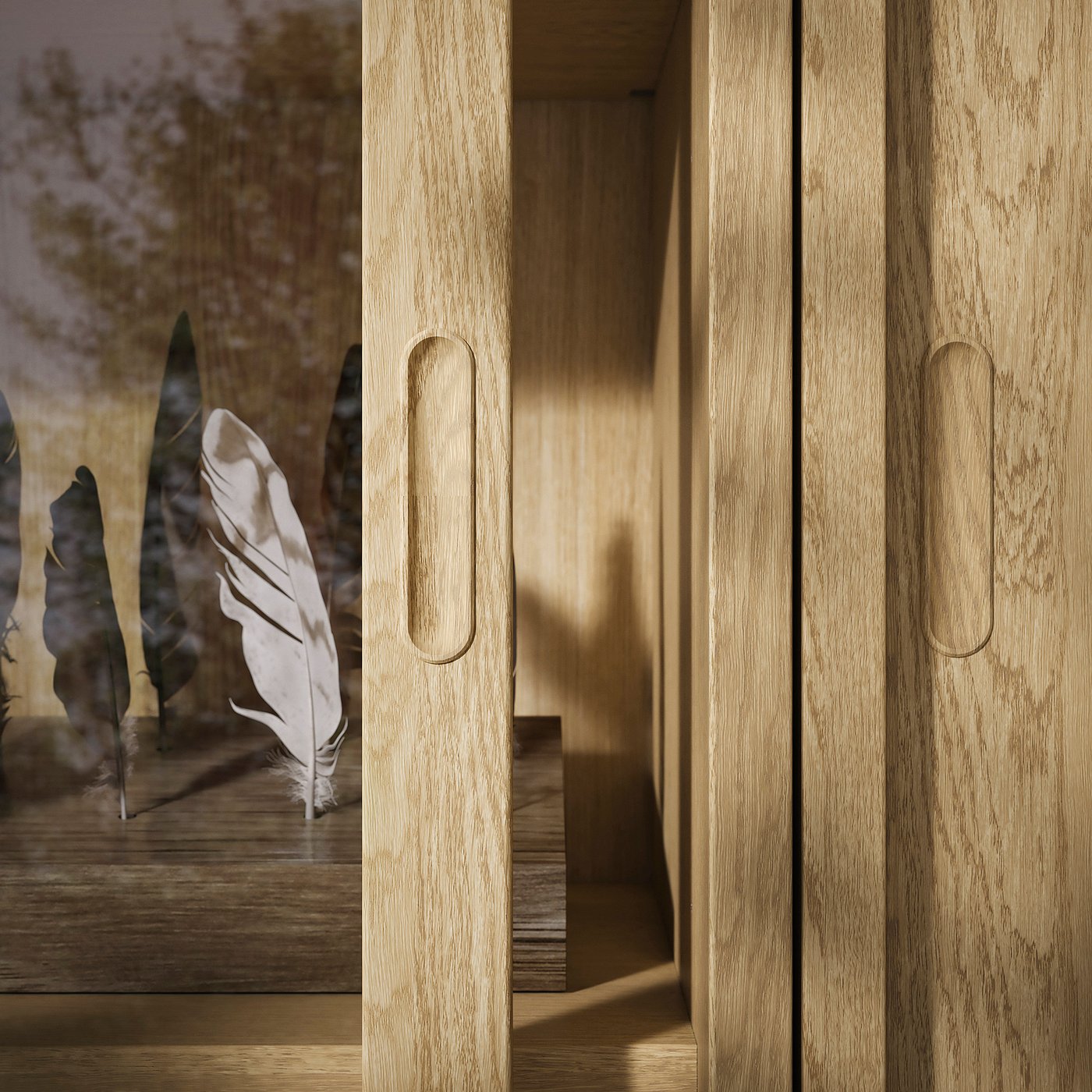 The knobs in solid oak have clean lines and is a classic detail that gives the furniture a timeless look.