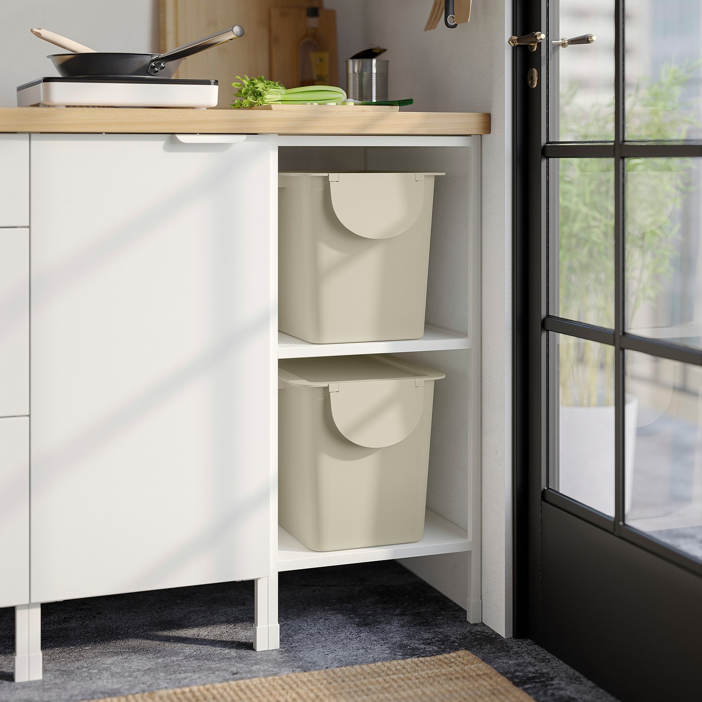 With TRÖSKNING bins, you can save space and allow waste sorting to become part of the decor, freestanding or stacked. Designed for dry waste but can also be used for storage.