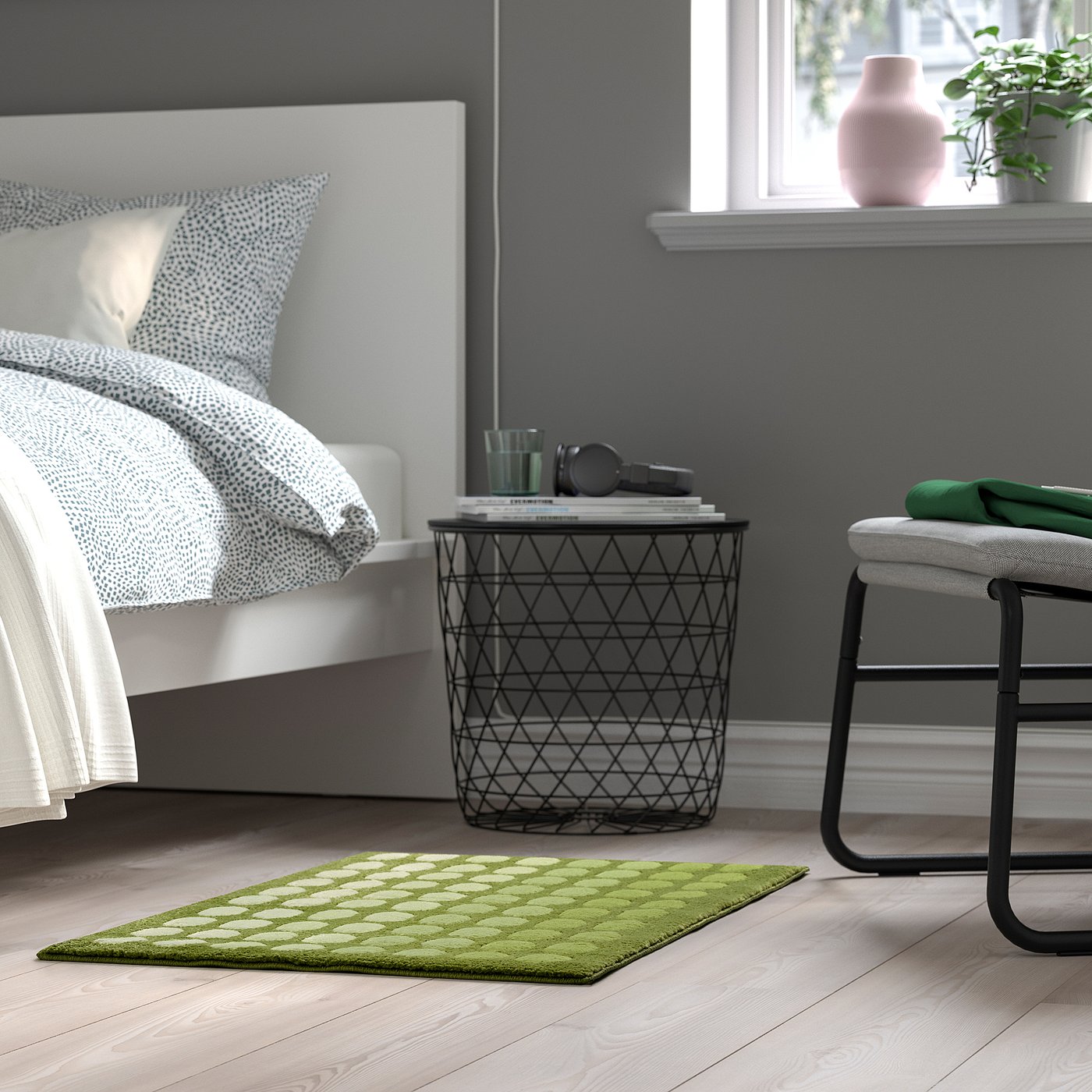 A welcoming door mat in light green with tactile, dotted gradient pattern. The mat captures dirt and moisture before it enters your home and adds a playful look to your hallway.