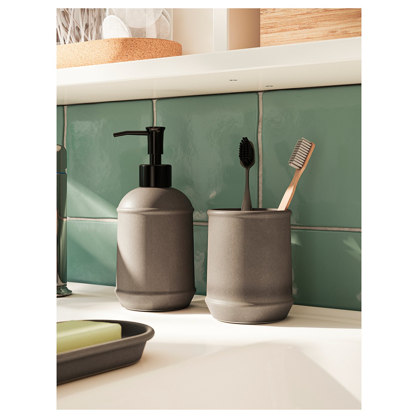 A traditional, crafted look in softly rounded stoneware with matte glaze. Use the tray for the dispenser and toothbrush holder or for smaller accessories. Harmonizes well with LILLASJÖN bathroom series.