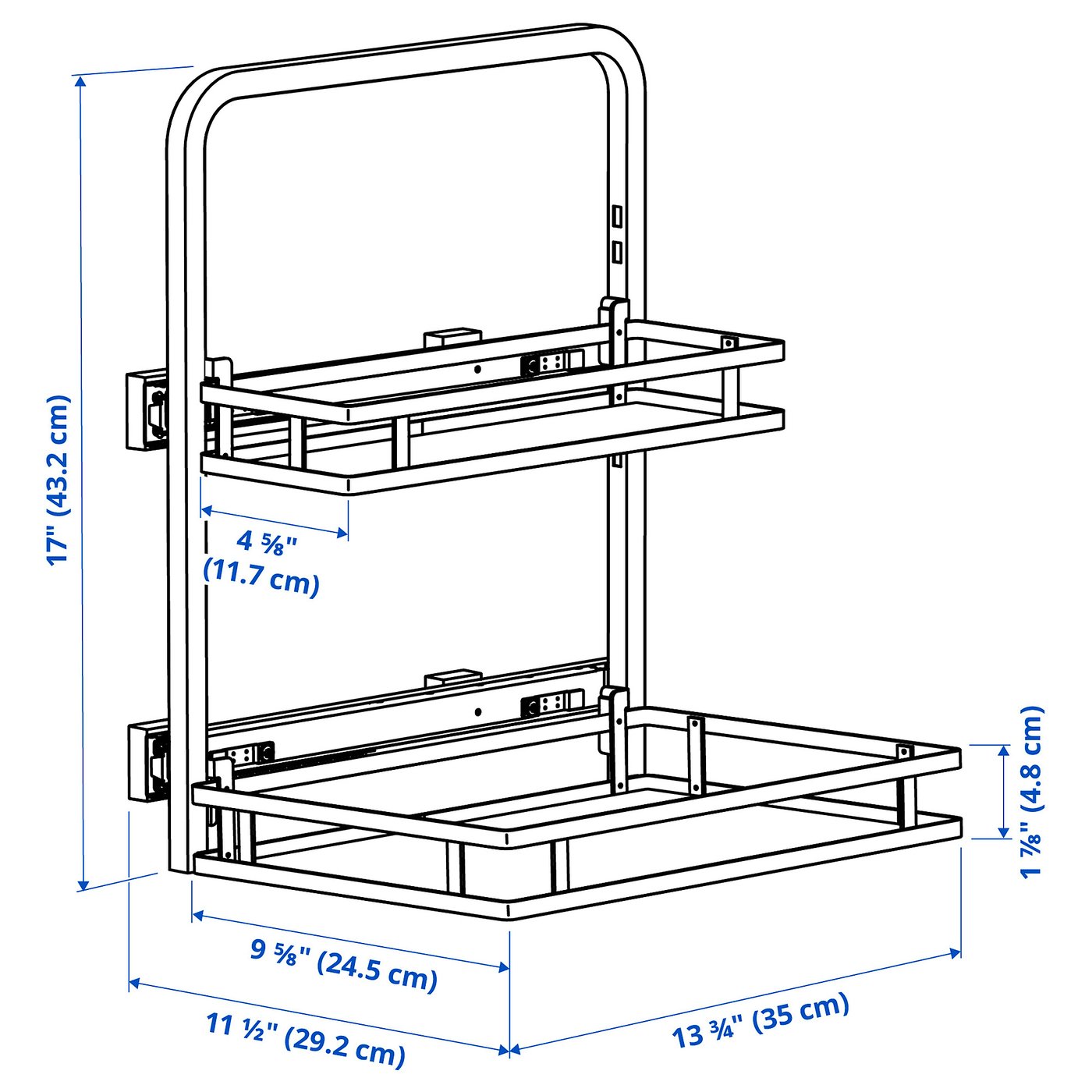 2 trays keep dishwashing essentials and small cleaning supplies neatly stored. The upper tray adjusts to 3 different heights for extra flexibility.