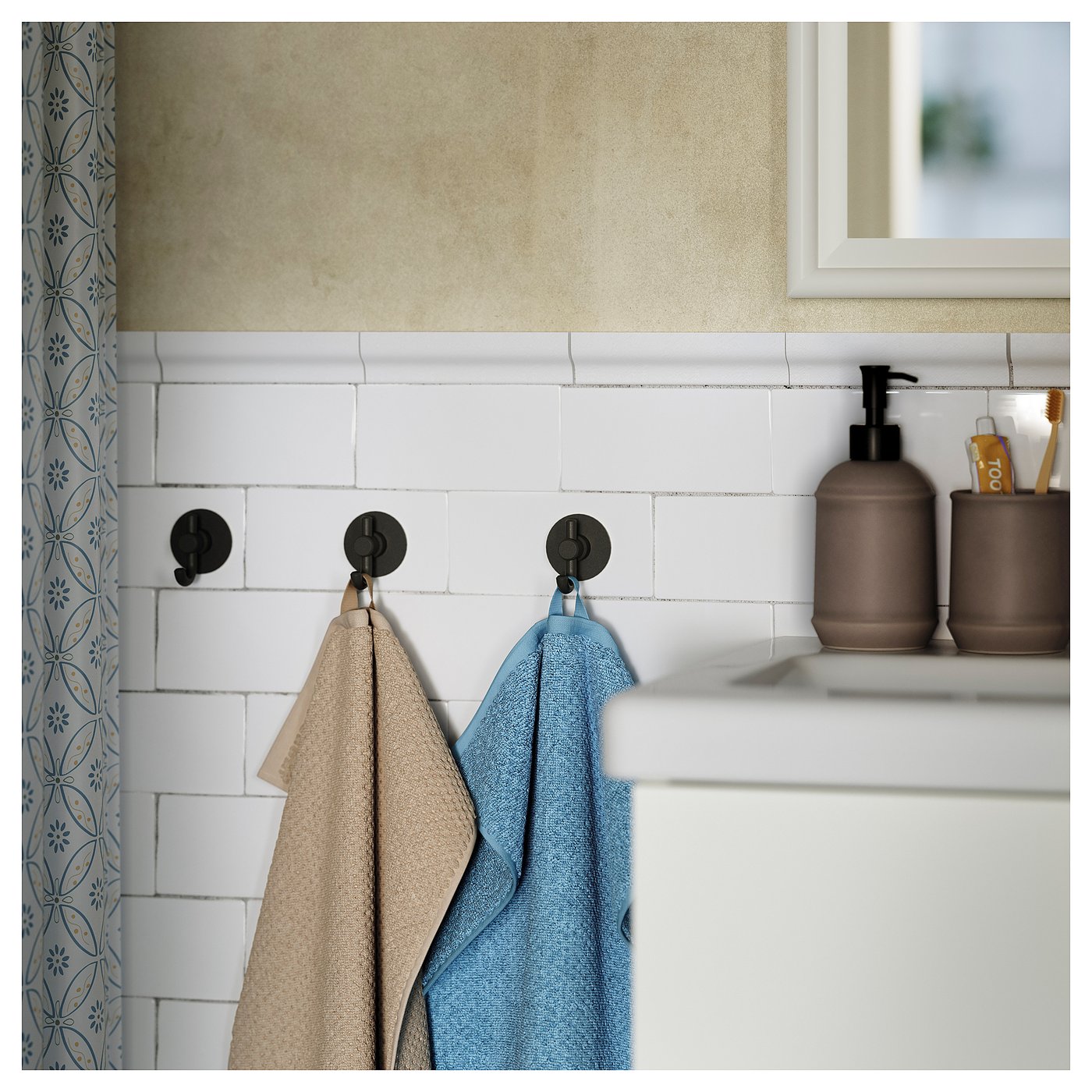 The VALASJÖN series has a traditional style expression with a focus on function and simplicity. The tops of these beautiful hooks allow you to hang several things and organize them better.