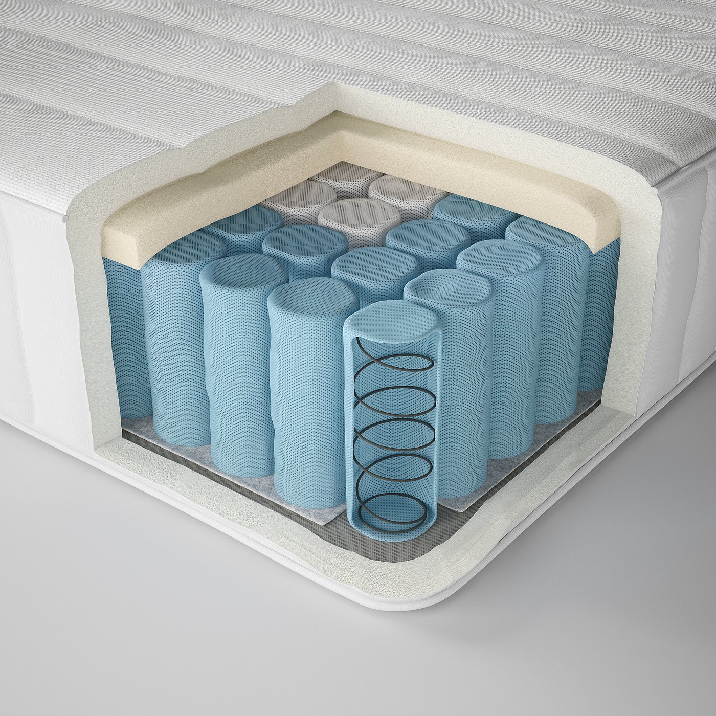 VALEVÅG pocket spring mattress with NISSEHOLM mattress pad is a perfect match for mid to heavier sleepers in all positions who like a firmer lying comfort. The mattress pad cover is removable.