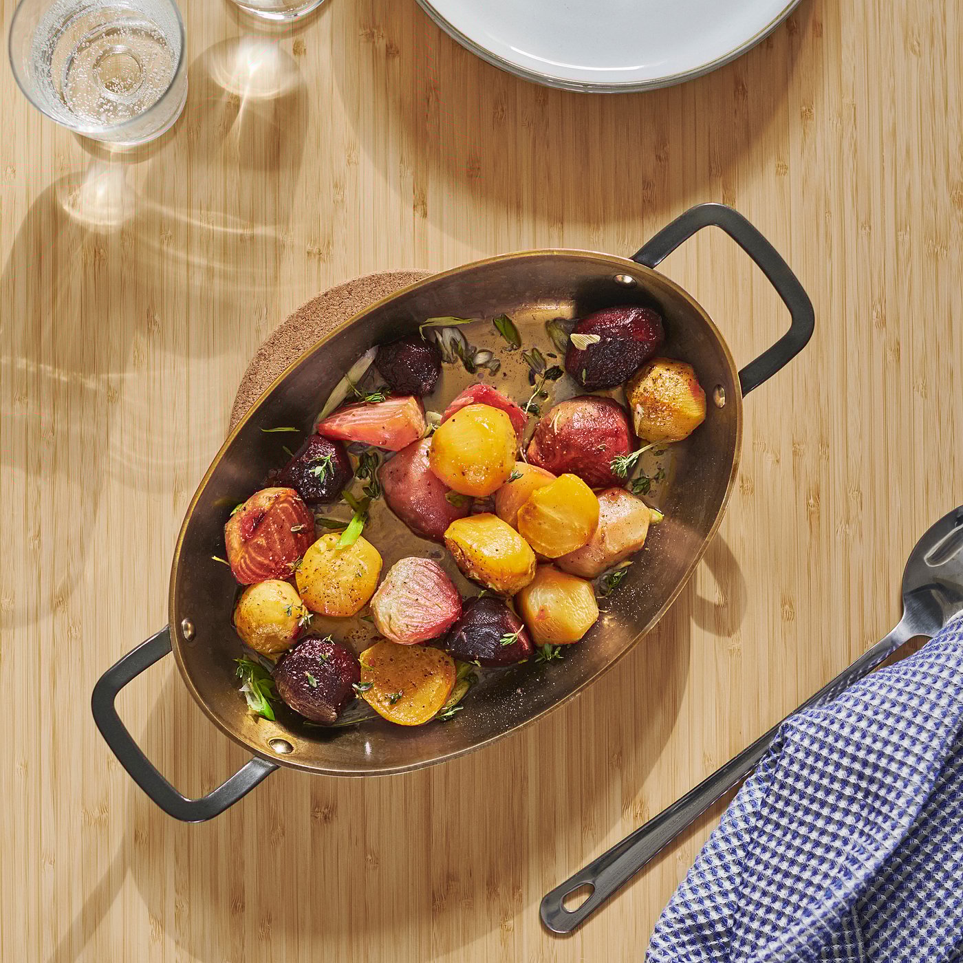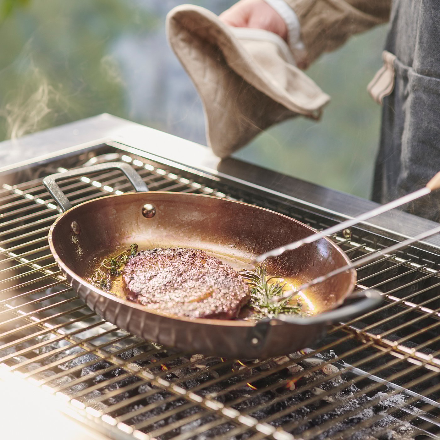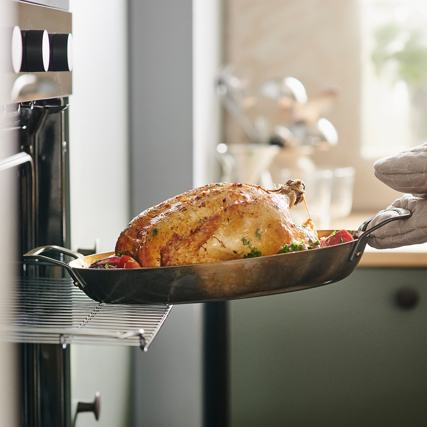 After seasoning, this carbon steel roasting pan gets a non-stick surface that prevents food from sticking, giving a great browning. Use it for Sunday roasted chicken and other delicious dinners for years!