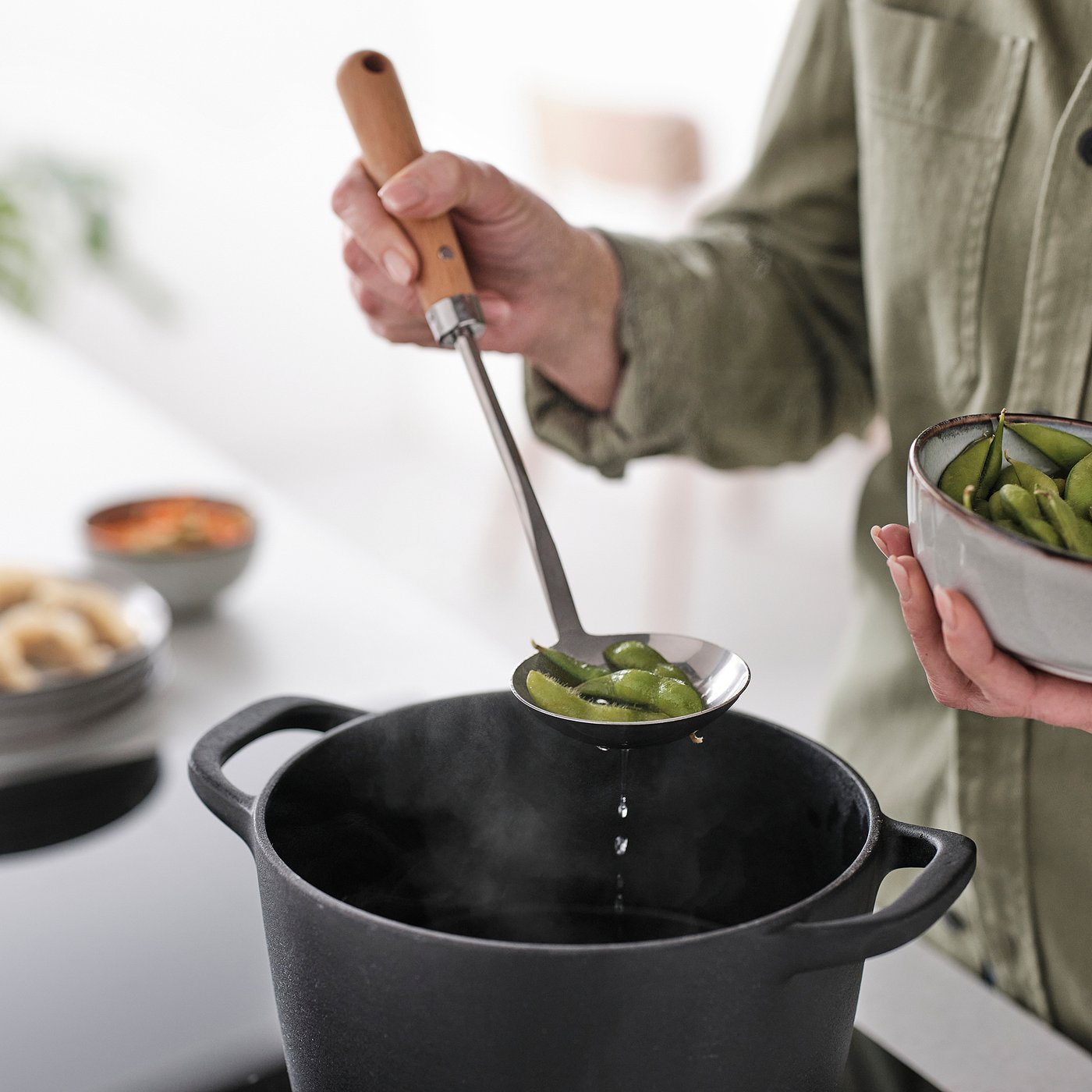 A skimmer is the ideal tool when you want to remove something from the pot without pouring out the liquid, like vegetables or solid ingredients in a broth. Perfect to hang by the stove.