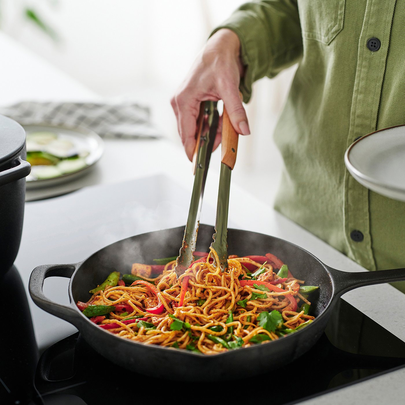 Difficult to turn vegetables and meat with the spatula? These grip-friendly cooking tweezers come to rescue in a flash, regardless if the food is in the oven or in a frying pan on the stove.