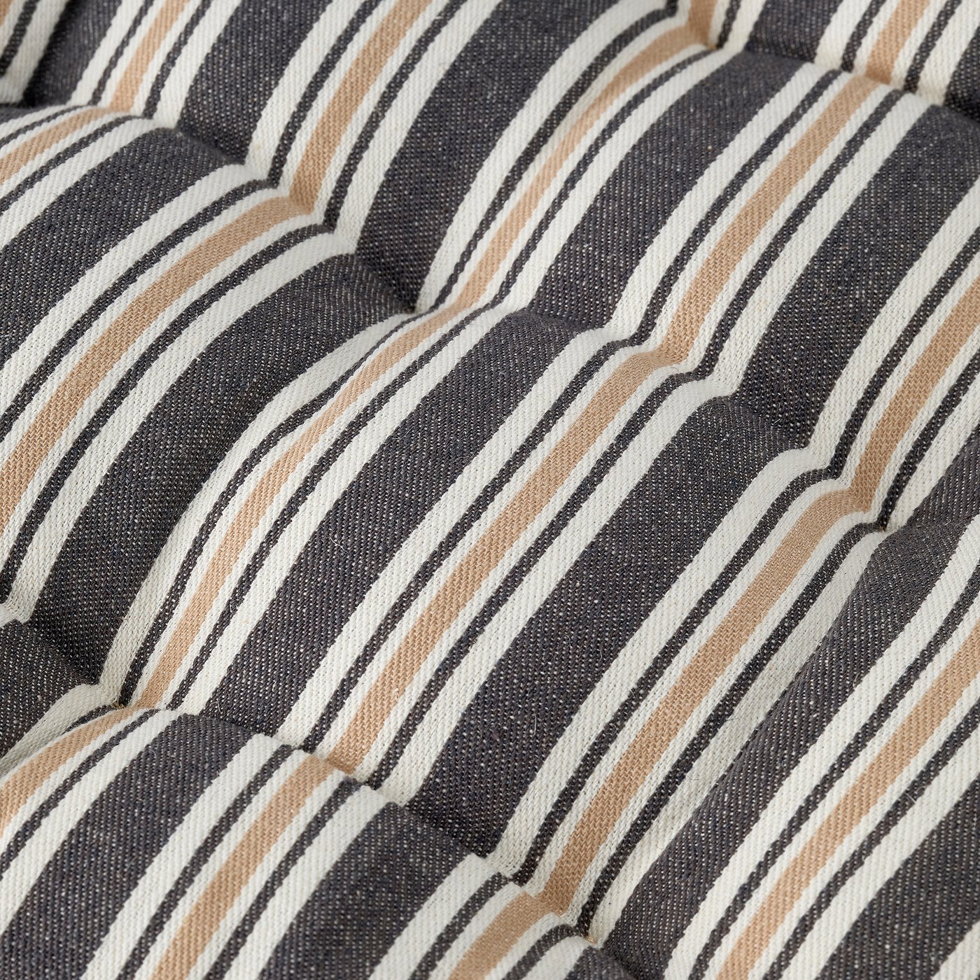 With comfy VATTENMOTT chair cushion, you are in for a soft landing. Identical grey stripe pattern on both sides means you can flip it over for more use before washing. Easy to coordinate.