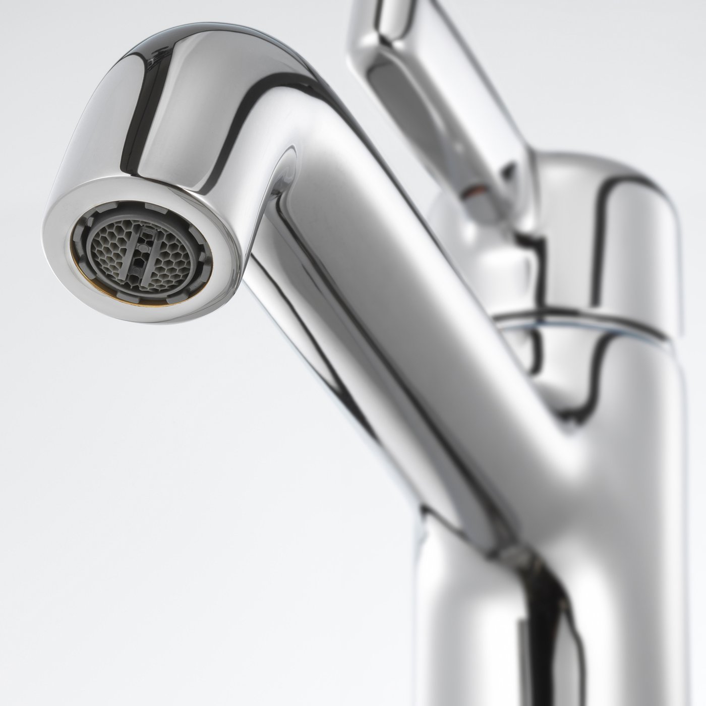 An aerator integrated in the faucet keeps the water flow just right while less water and energy is used.